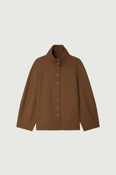 FREJUS is a pleated cotton twill trouser in khaki-bronze. Its fitted waist and wide legs create an elegant silhouette. Elasticated back waistband ensures comfort.