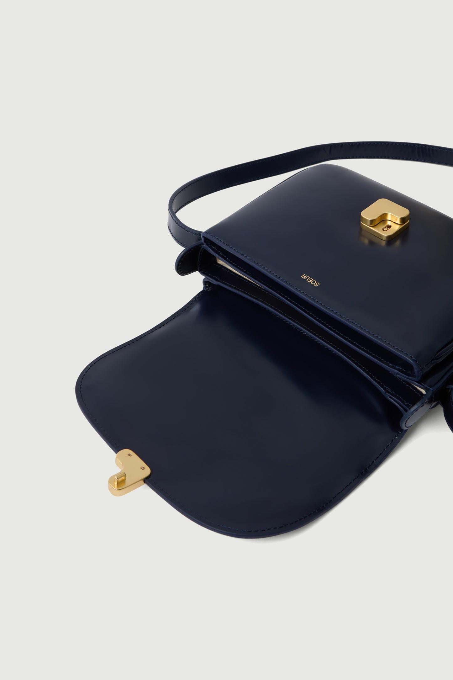 BELLISSIMA MINI is one of our iconic bags. It boasts ample storage space thanks to its 3 separate compartments. It stands out with our exclusive "S" clasp designed specifically for Soeur. Its large, adjustable strap allows for shoulder or crossbody wear.
