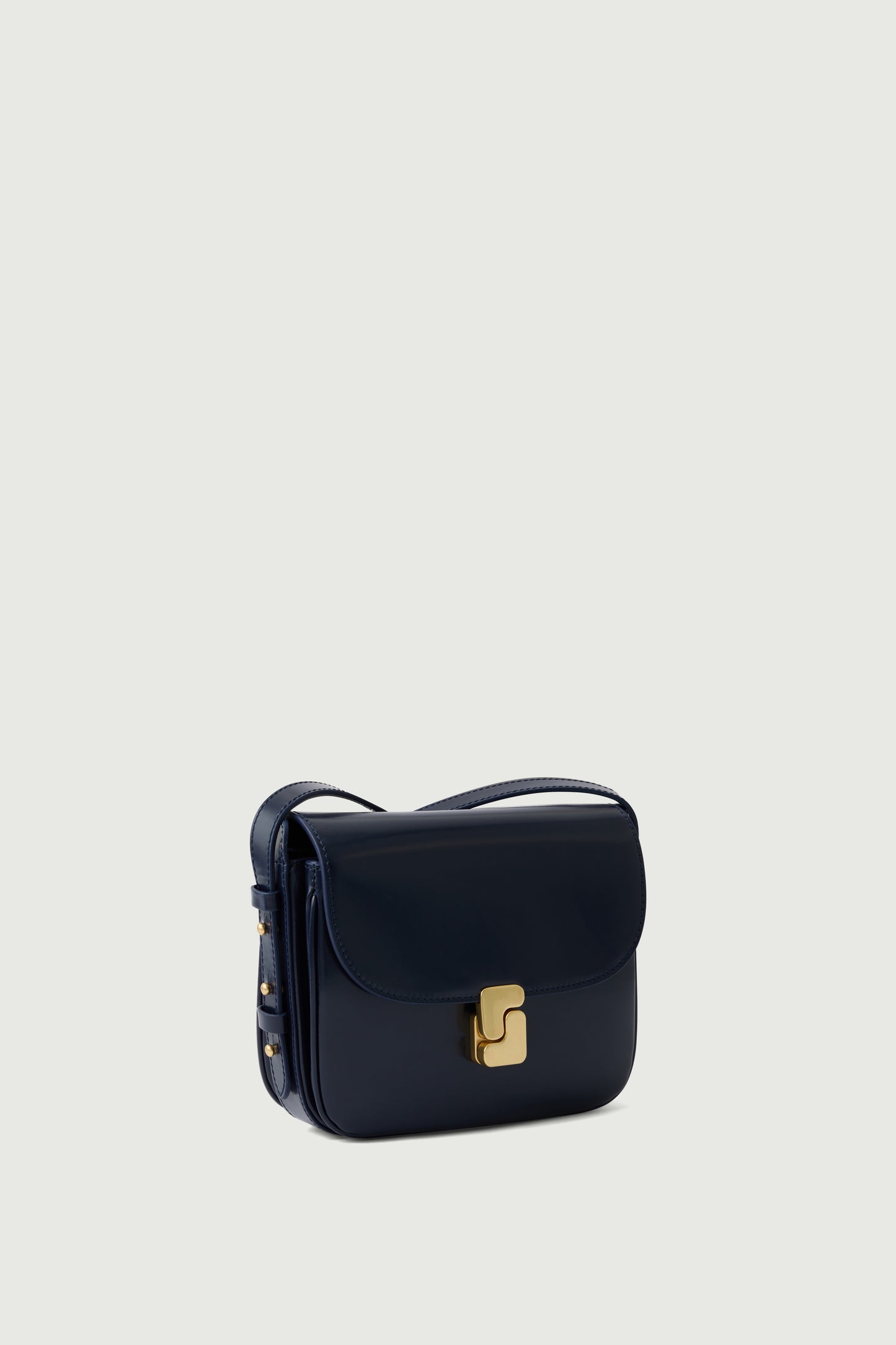 - Large front flap with golden "S" monogrammed clasp