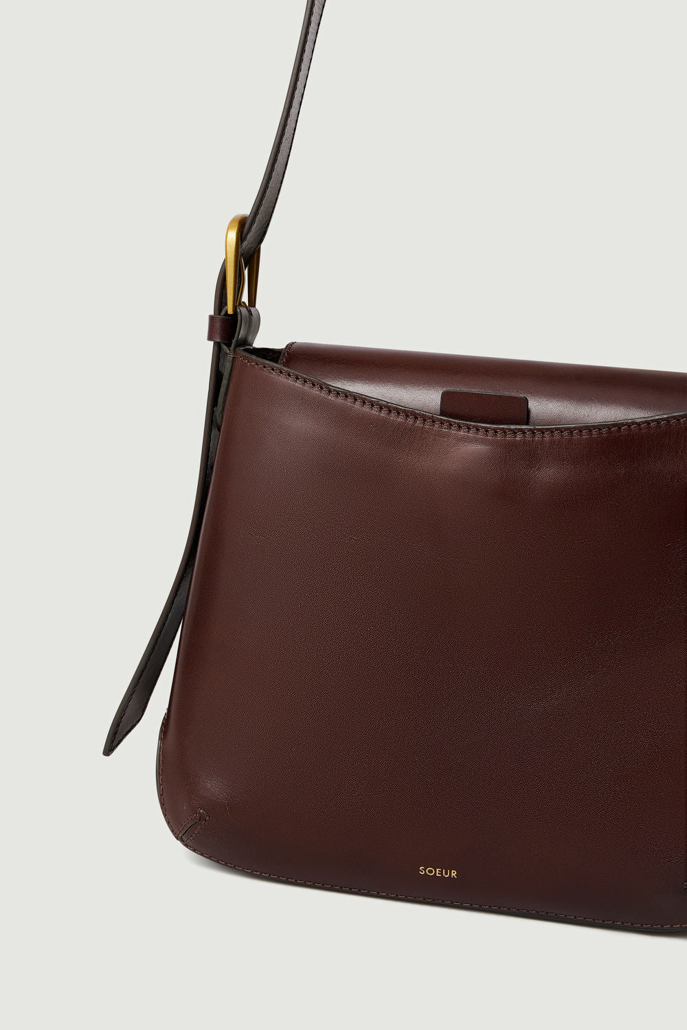 - Glossy Brown Leather Shoulder Bag